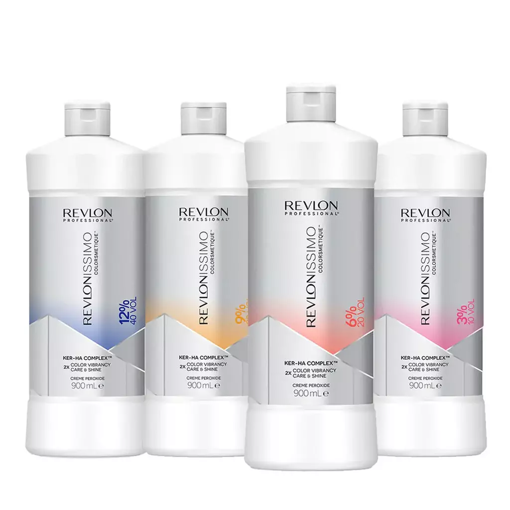 Revlonissimo Colorsmetique™ Creme Peroxide es una gama de alto rendimiento que garantiza servicios de coloración óptimos, con colores fieles al tono y una cobertura de hasta el 100% de las canas. Su fórmula versátil ofrece 4 concentraciones diferentes para una aplicación precisa y máxima personalización.